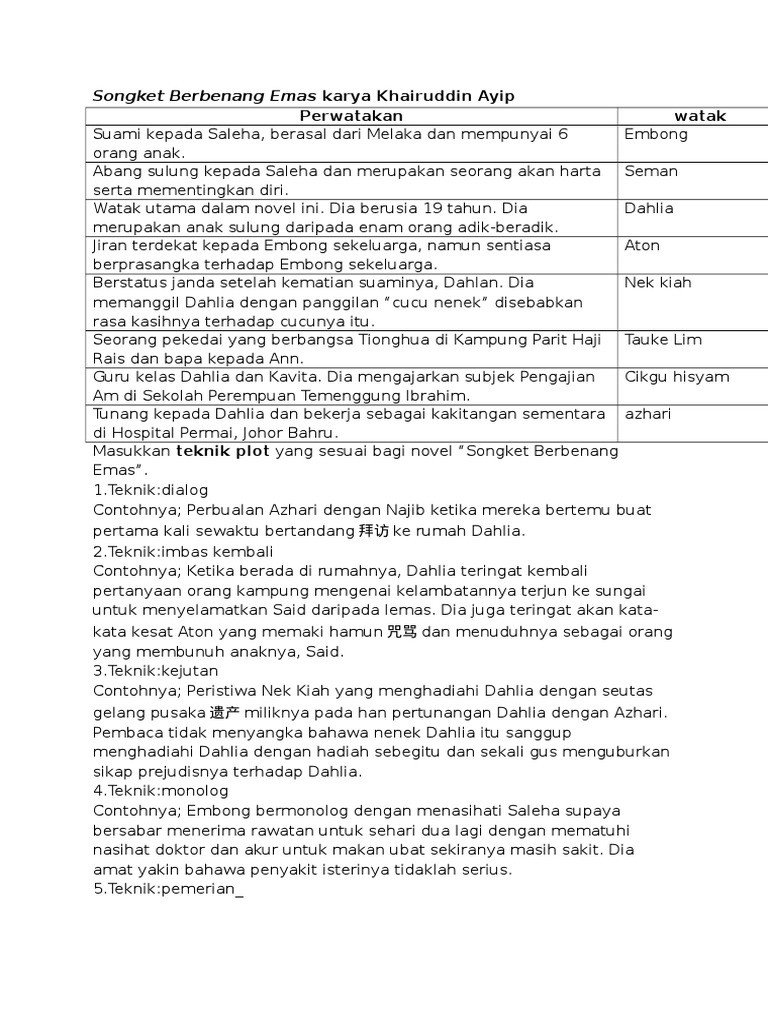 Nota Lengkap Novel Songket Berbenang Emas Pdf