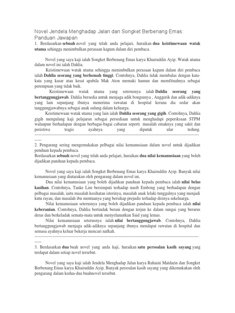 Nota Novel Songket Berbenang Emas Dan Soalan Serta Contoh Jawapan Membalik Buku Halaman 1 18 Anyflip